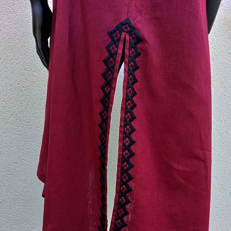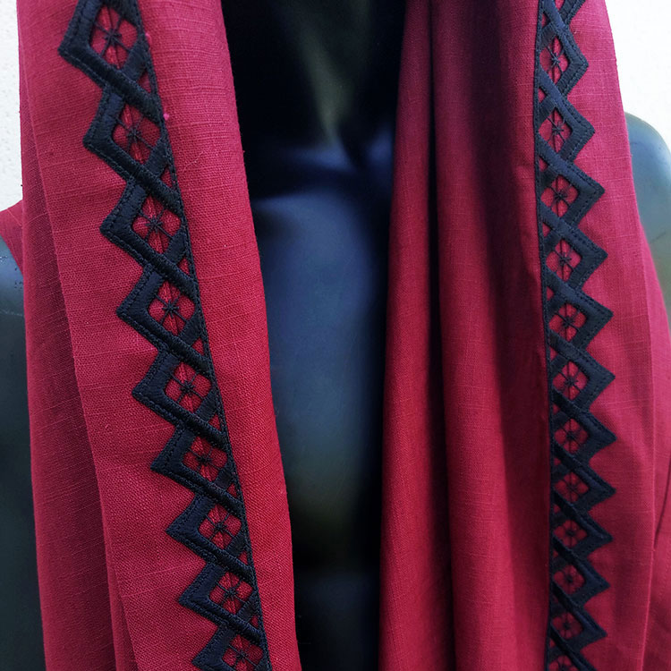 Avec son large col, ce caftan sans manches "Shaman" peut être utilisé de trois manières différentes : en capuche sur la tête, ramassé sur le cou ou déployé sur les épaules tel un châle. C'est donc une pièce de costume très polyvalente qui peut être réutilisée pour plusieurs personnages.